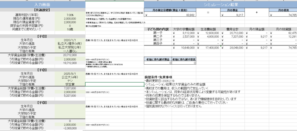 「子どもの進路」、「今の資産」を入れるだけで、教育資金をいくら貯めればいいか分かるスーパーシミュレータ―✨